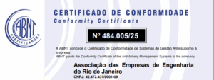 A Associação das Empresas de Engenharia do Rio de Janeiro (AEERJ) recebeu, em julho de 2025, o Certificado de Conformidade do Sistema de Gestão Antissuborno, conforme os requisitos da norma ABNT NBR ISO 37001:2017.