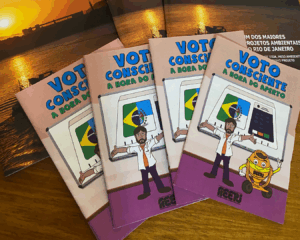 A cartilha “VOTO CONSCIENTE” é um material apartidário, educativo, em formato de gibi, que fala direto com os jovens e com a sociedade, mostrando que o voto é uma ferramenta poderosa de construção cidadã.