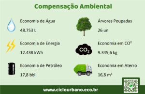 - O resultado já pode ser medido: quase 5 toneladas de resíduos reciclados, com destaque para a compensação energética gerada ao meio ambiente (vide gráfico abaixo). Todo o material reciclável é direcionado a cooperativas de comunidades locais, o que garante não apenas o reaproveitamento ambientalmente correto dos resíduos, mas também impacto econômico e social nas regiões beneficiadas, gerando renda e inclusão produtiva.
