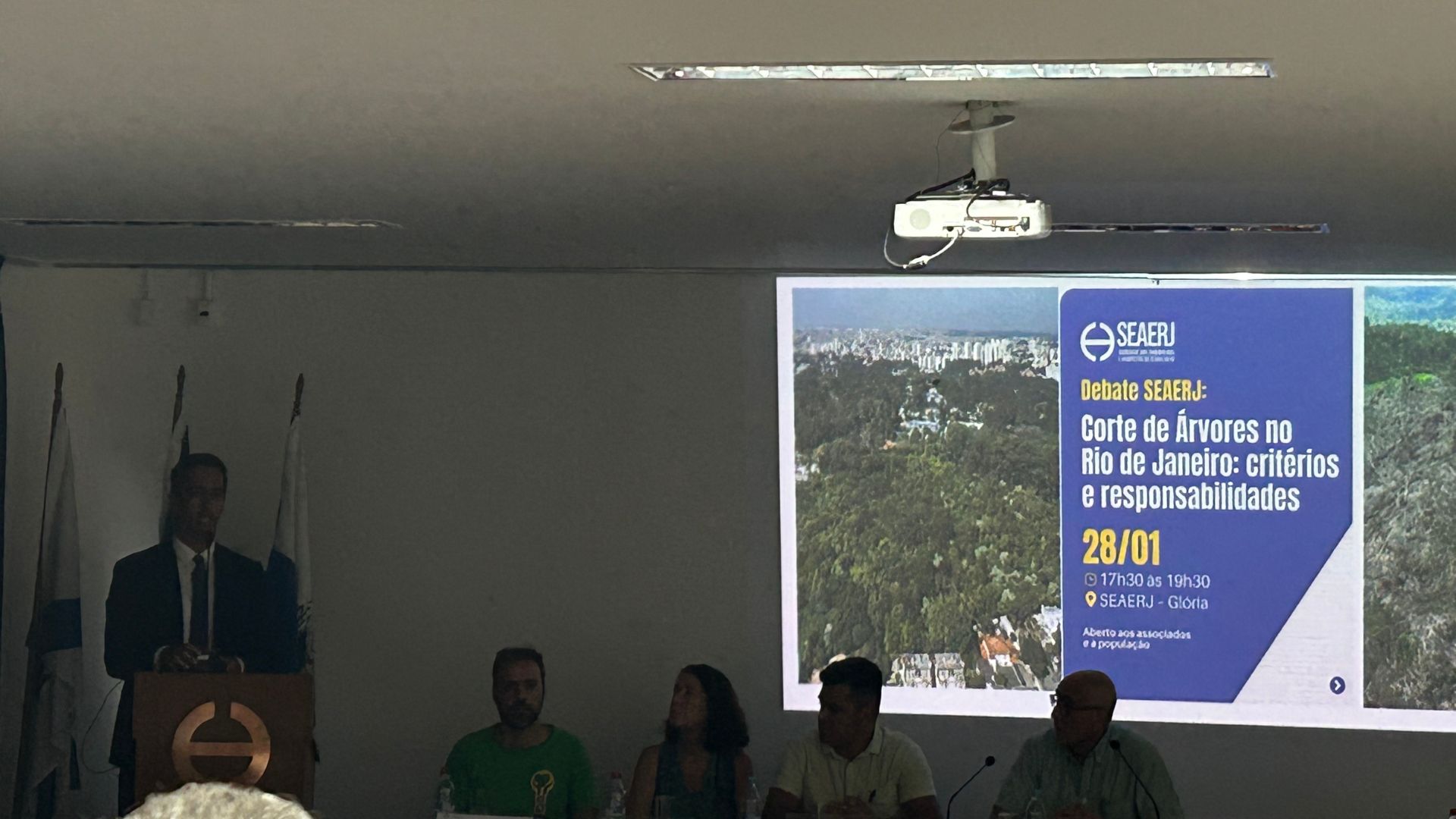 A Sociedade dos Engenheiros e Arquitetos do Estado do Rio de Janeiro (SEAERJ) sediou, no dia 28 de janeiro, em sua sede na Glória, o debate “Corte de Árvores no Rio de Janeiro: critérios e responsabilidades”, reunindo representantes da sociedade civil, do Ministério Público, especialistas, acadêmicos e ex-gestores públicos para discutir os impactos da supressão de árvores na cidade e os critérios adotados pelo poder público.